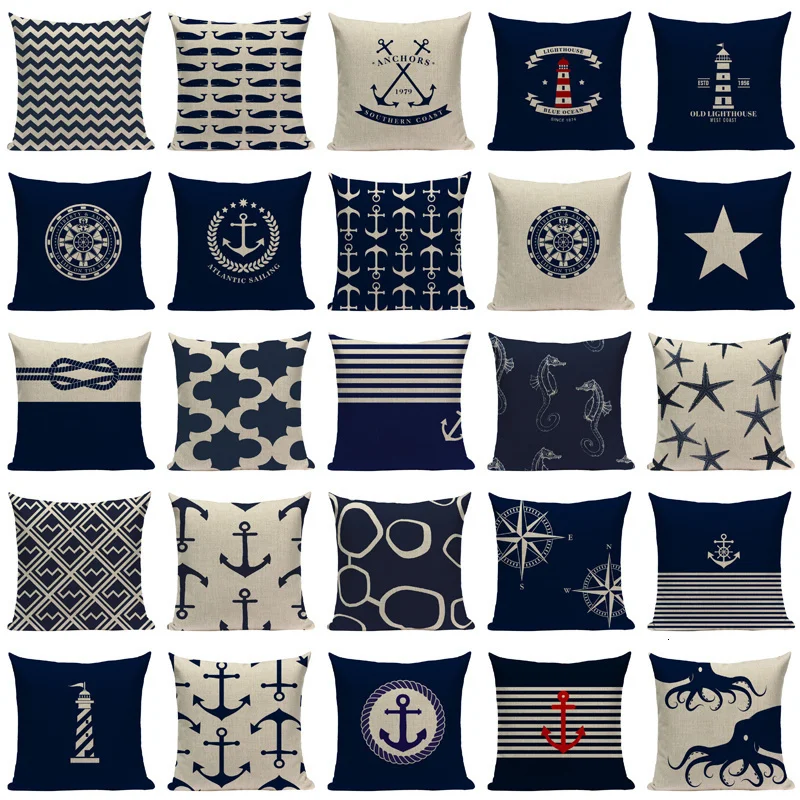 Blue Nautical Throw Pillows case Anchor Sea Style Throw Case Sofa Home Car Decorative Custom Printing Cushion Pillow Case Cover