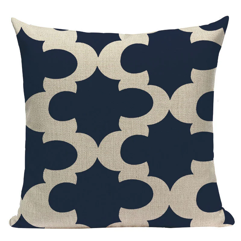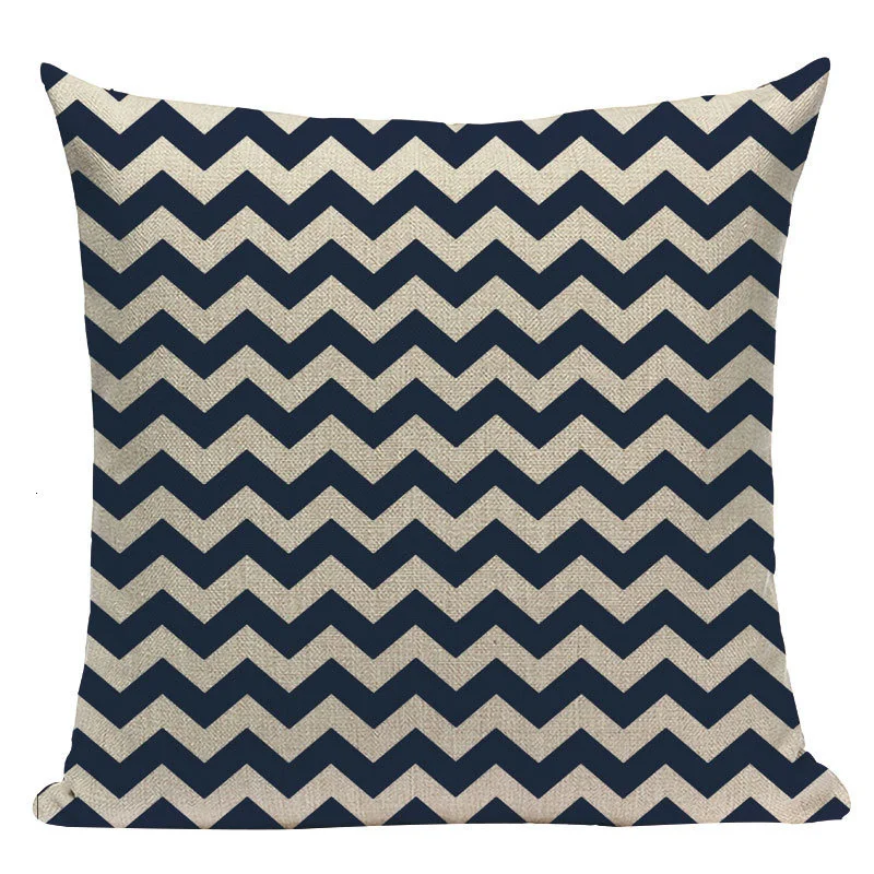 Geometric Pillow CushionCover Nordic Ocean Home Decoration Pillows Custom Linen Print Scandinavian Style Blue White Pillow Cover